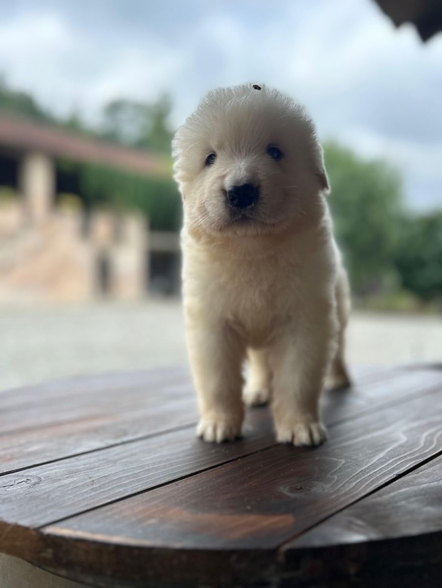 It shows a balanced temperament and a natural predisposition for socialization, essential qualities for its future aptitude as a livestock guardian and family companion. It is curious but not overly intrusive, already demonstrating a good instinct for vigilance without excessive fearfulness.