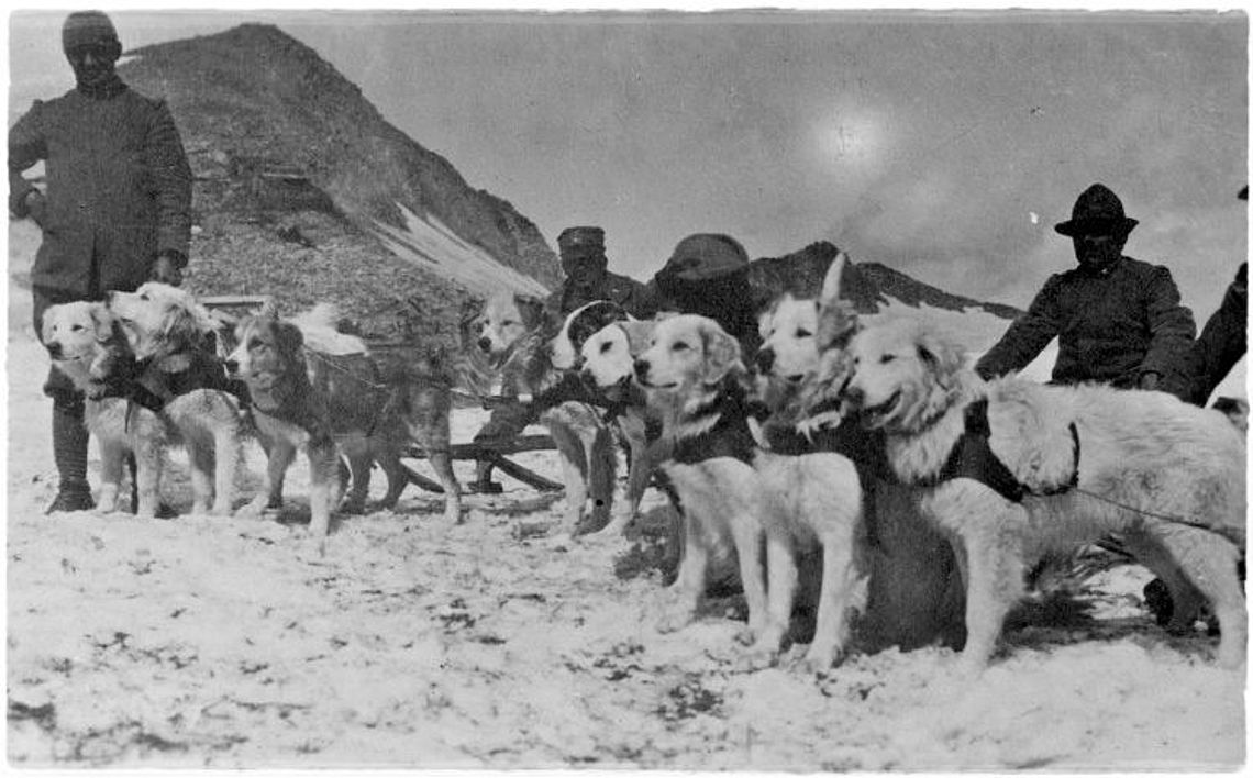 And that’s how a decent number of animals was recruited from the Central-Italian transhumant shepherds and sent to the front after a short training. The strong temperament of the Maremma gave the best results in that occassion; in groups of 2 or 3 they pulled small carts or sleds, supplying the troops with food and ammunition for the time necessary, gaining deep gratitude form the tough soldiers. Lashed by icy wind and snow, blinded by the reflections of the glaciers, they moved up along the steep viaducts, concentrated on transporting their precious freight; never impatient or tired, with great discipline like true soldiers, almost aware that they were trusted with the survival, the life of those boys who fought in the first rows.